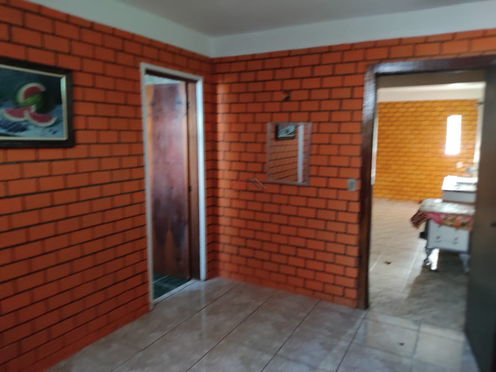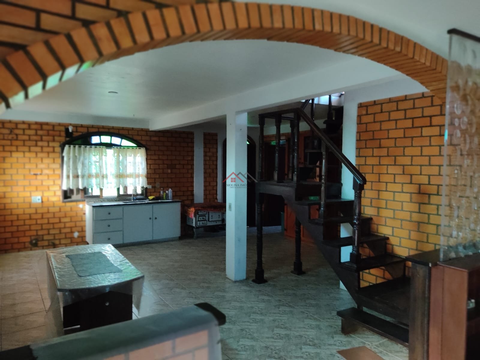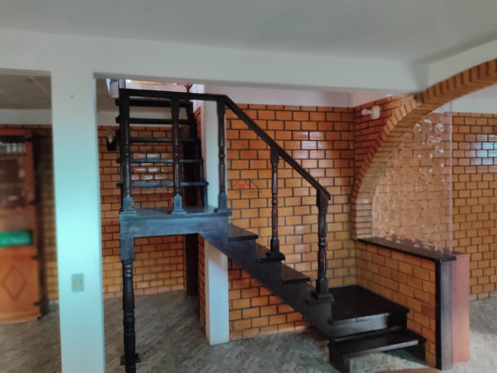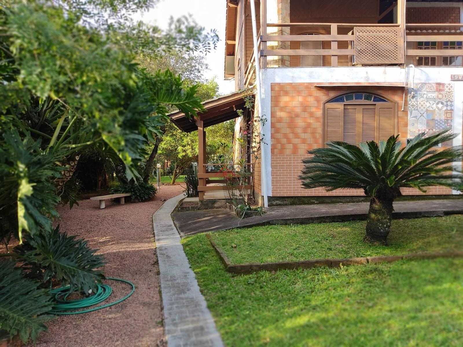 Casa de tijolos à vista no pavimento térreo e madeira no superior, (dois pavimentos), toda com piso frio: