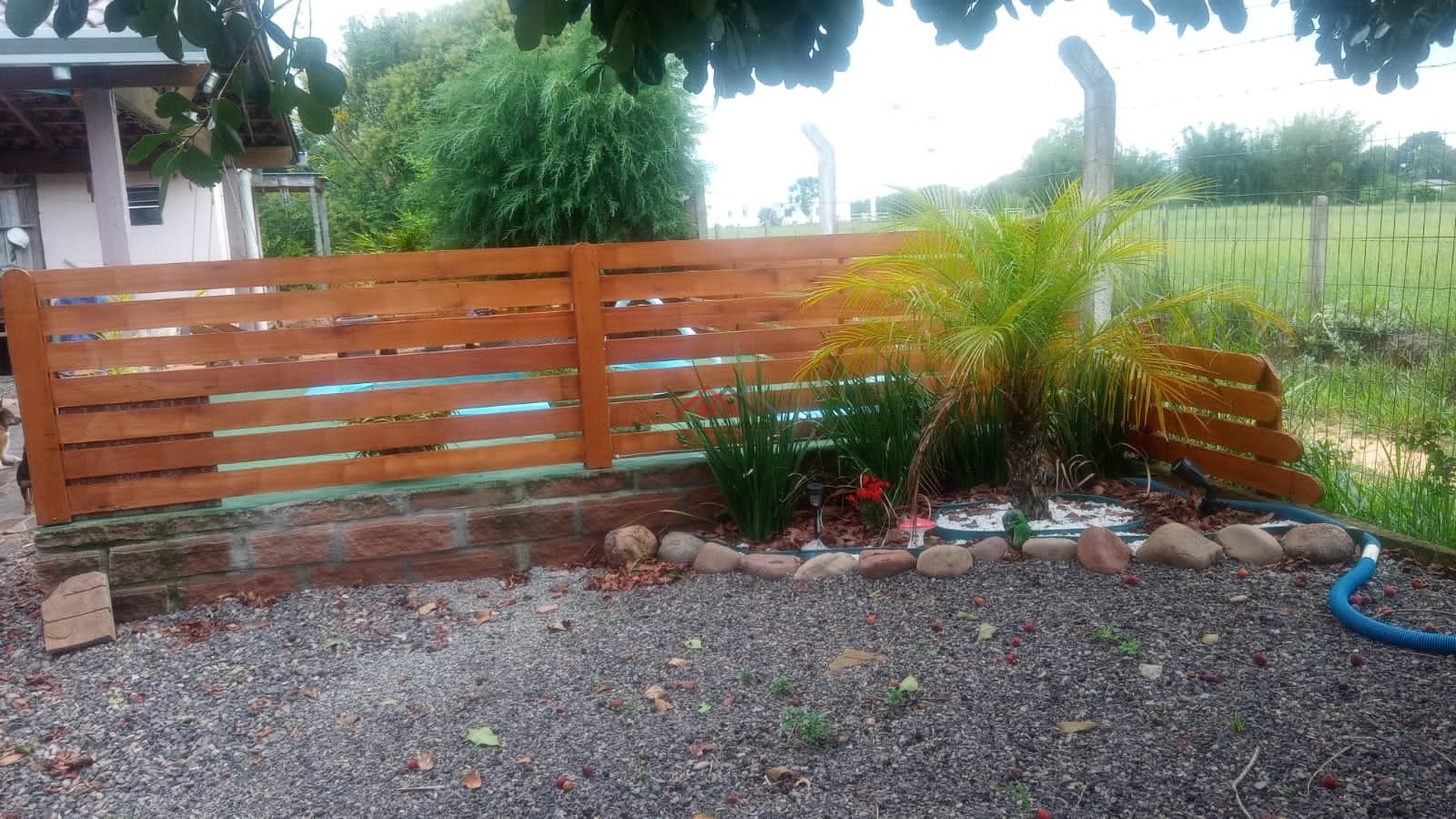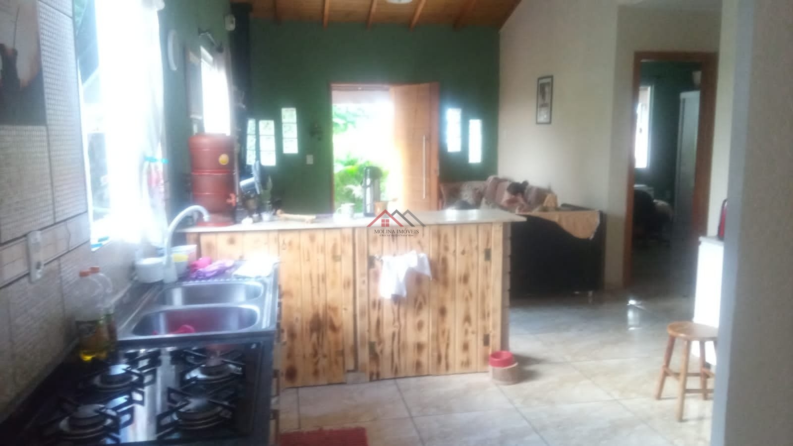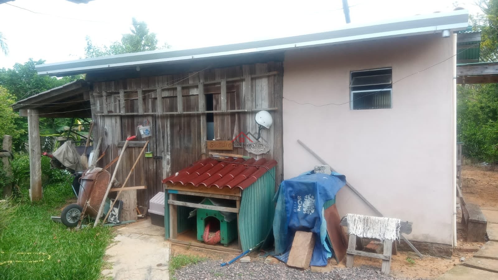 O imóvel conta ainda com galpãozinho pequeno com banheiro, piscina e um amplo terreno de 550 m², totalmente cercado, arborizado e gramado, oferecendo privacidade e tranquilidade.