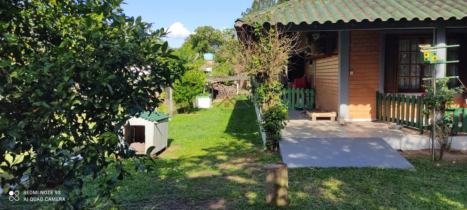 Lindo sítio localizado em condomínio fechado, a apenas 1 km da RS 040. O imóvel possui área de 1.350 m² e uma casa de 180 m² em alvenaria, com tijolos à vista e excelente acabamento. Toda a casa é avarandada, com forro externo de cedrinho, garantindo charme e conforto.