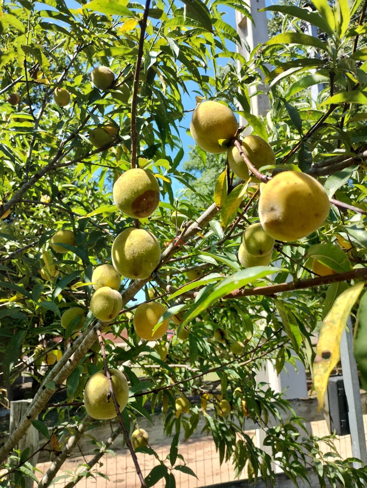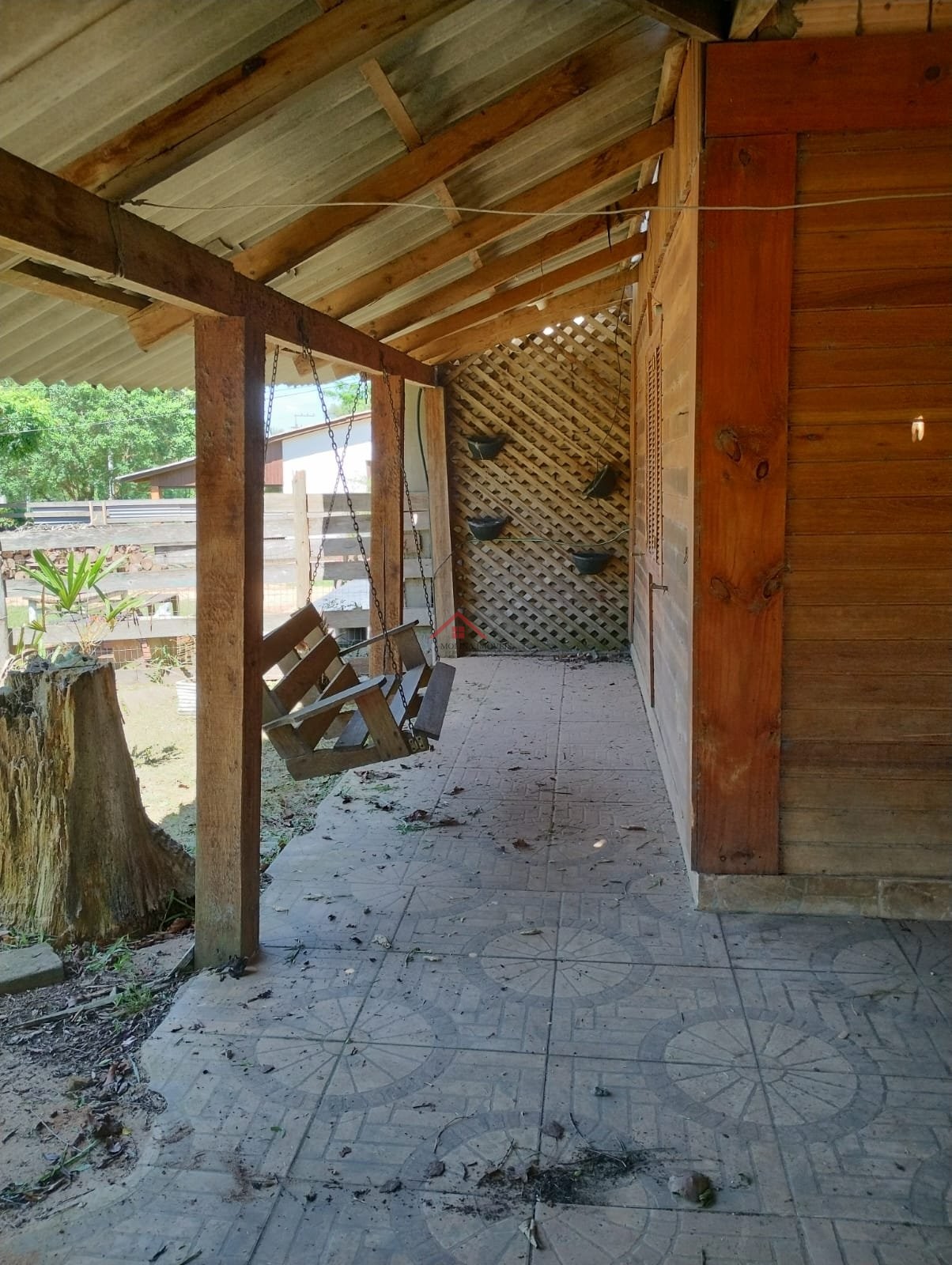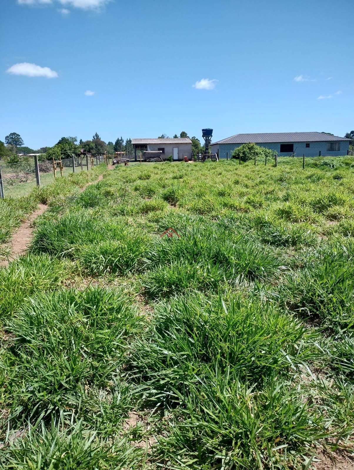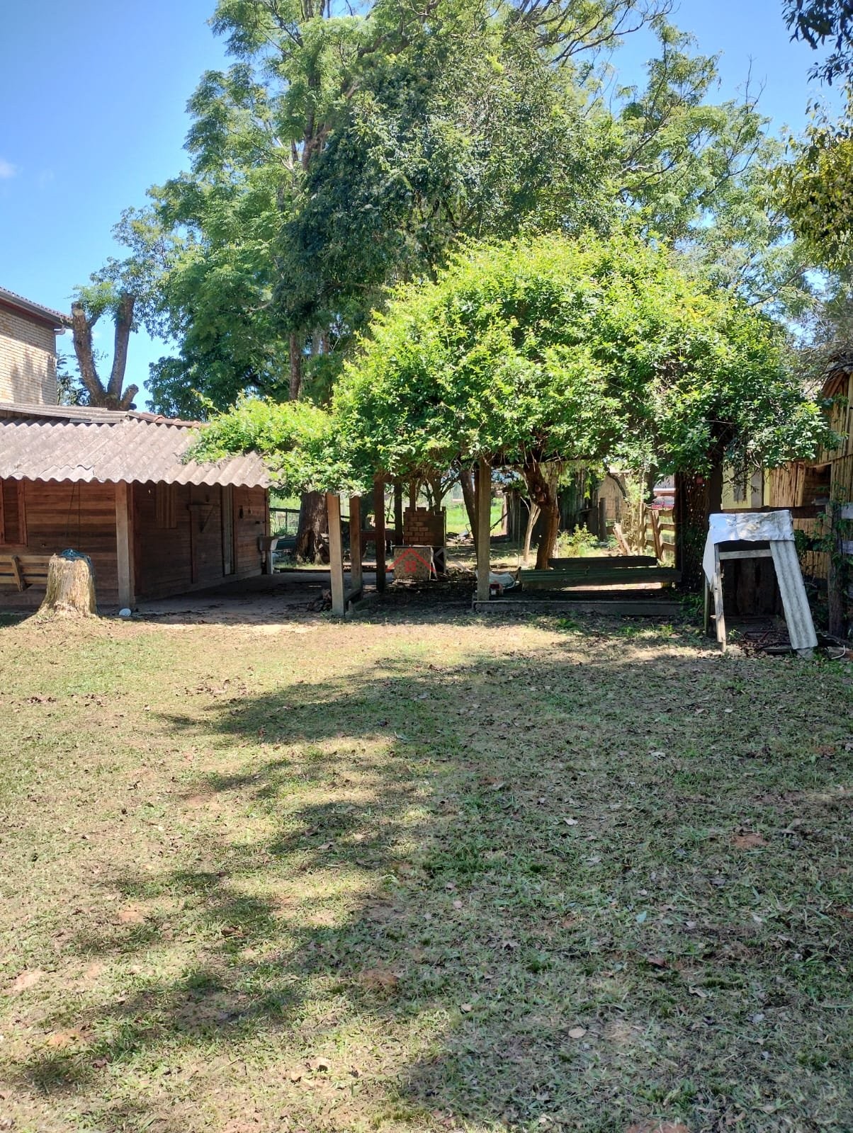 O terreno é todo cercado e contém diversas estruturas, como galpão para ferramentas, galinheiro, quiosque com churrasqueira e um pergolado com balanço.