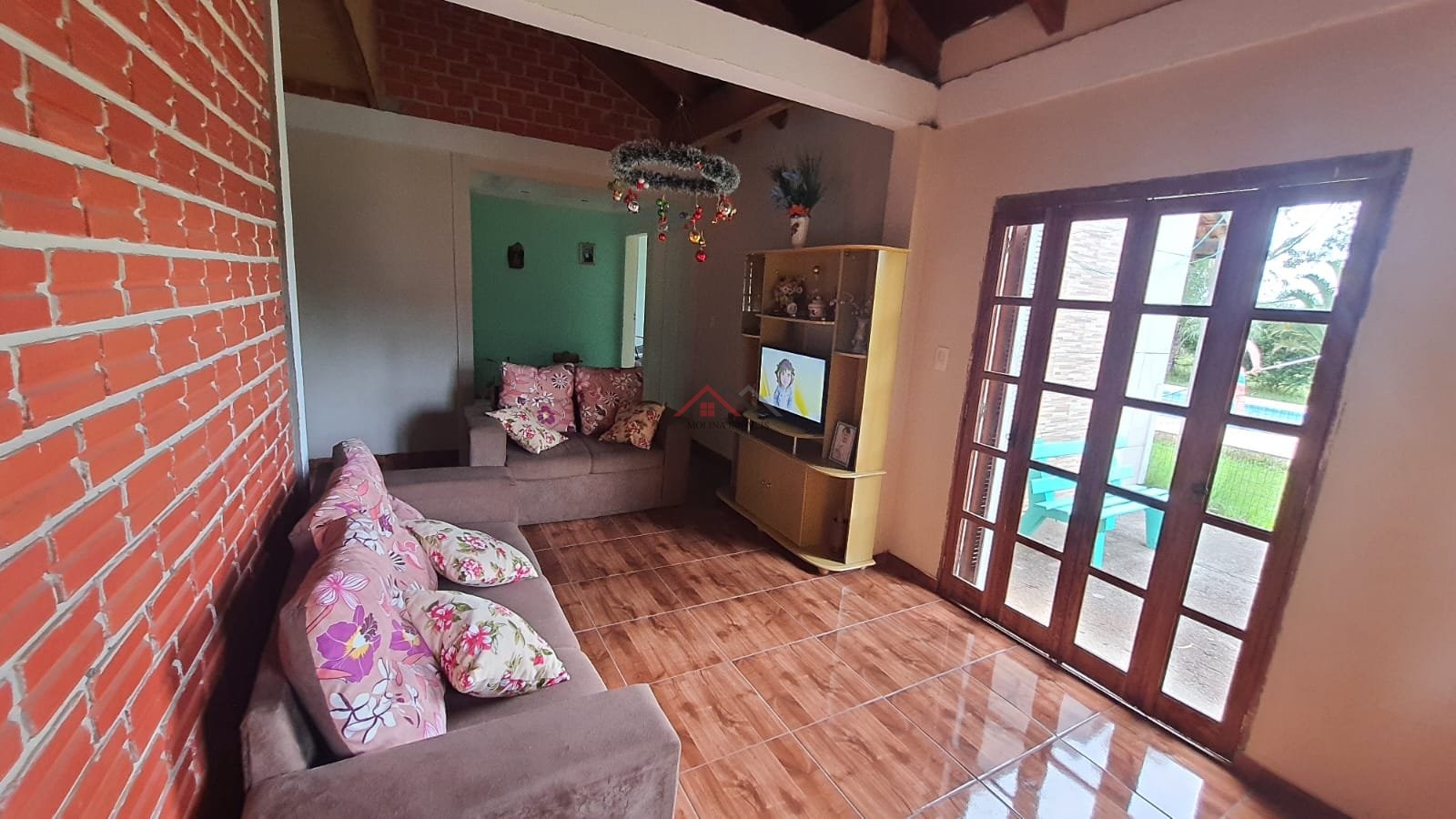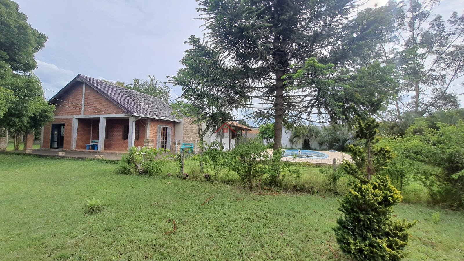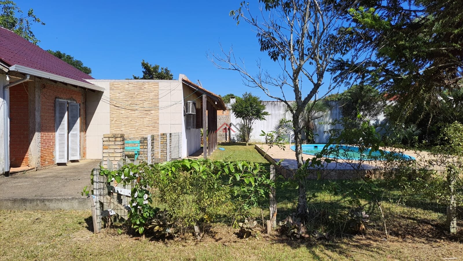 Lindo Sítio 3.108m2, (84 metros por 37mts) com ótima casa, reformada, com 5 dormitórios, sendo um suite e um no sótão, closet, 2 ar condicionado, 2 banheiros, cozinha com churrasqueira e fogão campeiro, sala, sótão com acesso à cobertura aberta 2° piso revestida. Piscina 10 X 4mts, poço semi artesiano, com pressurizador. Casa de caseiro, com banheiro. Terreno 100% plano, gramado, bem arborizado, frutíferas, todo fechado com cerca de tela.