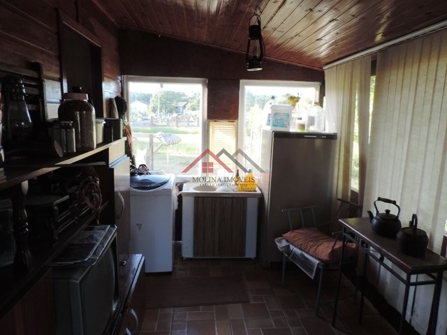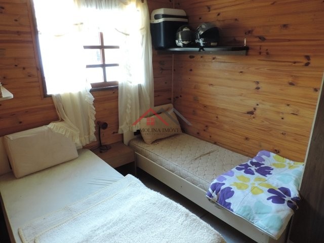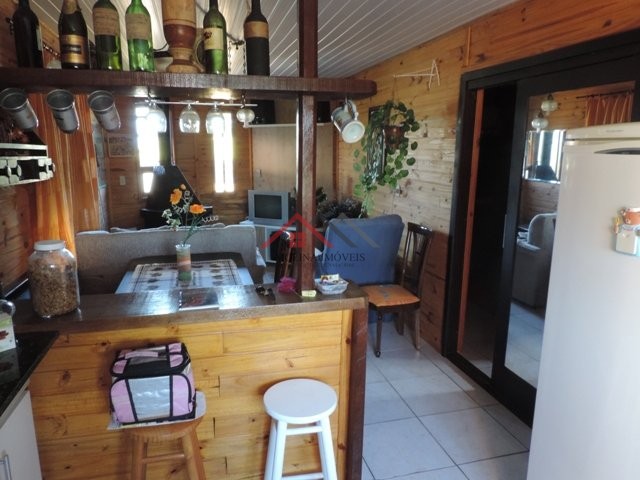 Sítio com 977m2, de Rua a Rua, com casa de madeira IPE, duplada em Pinus, com 2 dormitorios, sala com lareira, cozinha banheiro, garagem para 2 carros, com cozinha campeira, condomiÂnio fechado, com lagoa para banho e pesca, pracinha, galpao para eventos, e piscina. Porteira fechada.