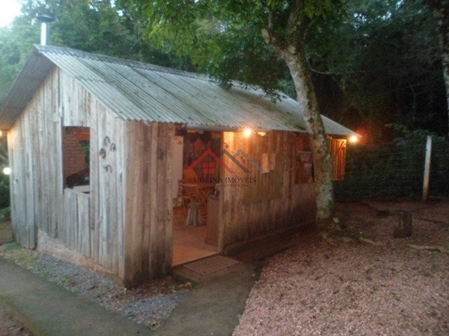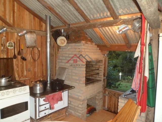 A extensao do imovel e 40 x 180 metros, dos quais 40 x 60 metros, cercada com tela de arame soldado e moirao de concreto com 2 metros de altura, onde se encontra a Area edificada (casa, galpao, lavanderia), o jardim, o pomar e a horta. O restante da Area com mata nativa, cercada com moiroes de cerne, trama escura e 8 fios de arames liso e farpado. dois portoes de metal, na entrada da casa e de acesso ao mato. A casa, em muito bom estado de conservacao, com pintura recente, possui 2 dormitorios e 1 banheiro social, ampla sala e cozinha integrados com lareira e ar condicionado, sala de estar aconchegante com dois ambientes, com textura nas paredes, porta e janelas envidracadas integrando ambientes internos com area externa. Janelas e Porta de entrada gradeadas, com uma saida de emergencia. Instalacao de cabo para antena SKY na sala e quartos. Box e janela de alumiÂnio no banheiro. Todas as janelas possuem tela com armacao de madeira.
